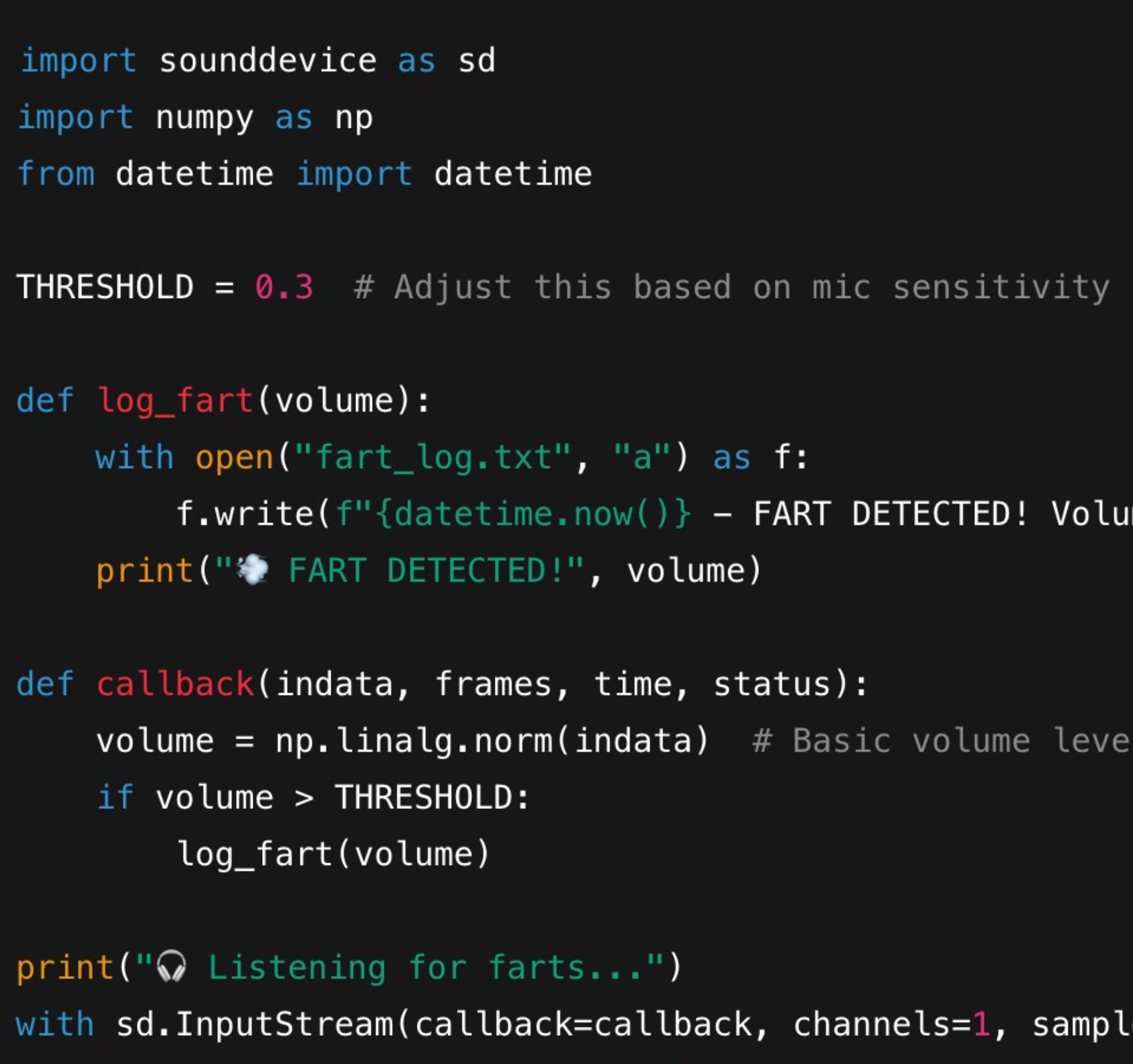 My 8-year-old son and I were talking about building things with code, and when I asked what he’d want to make, he (predictably) suggested that we make a “fart detector”.